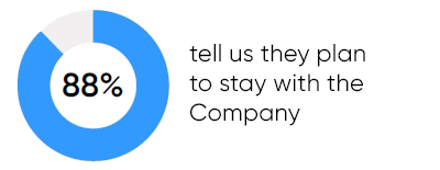 Our employee engagement program and philosophy is laser-focused on attracting talent with a holistic value proposition that addresses the raised expectations of employees in the labor market today. It rests on a solid foundation of competitive compensation and benefits and strives to positively influence employee happiness by: